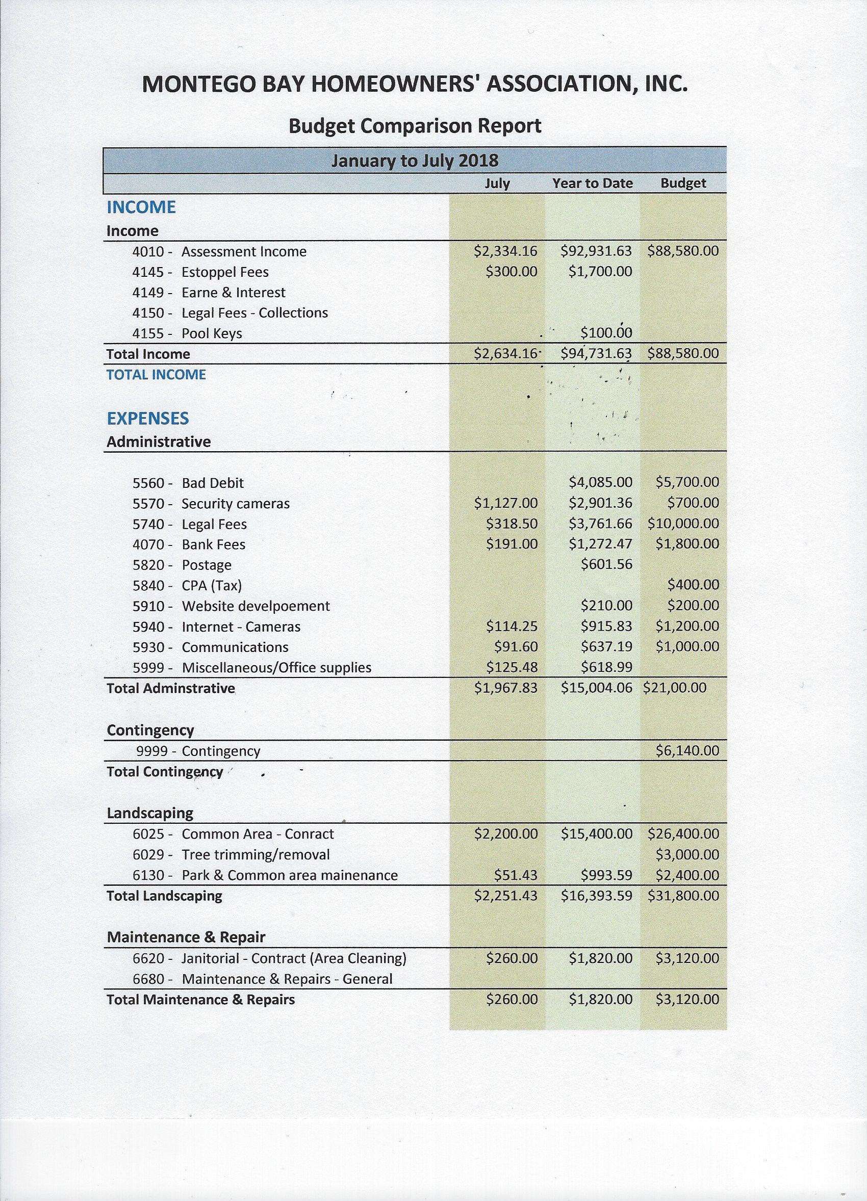 Financial report for January-July 2018