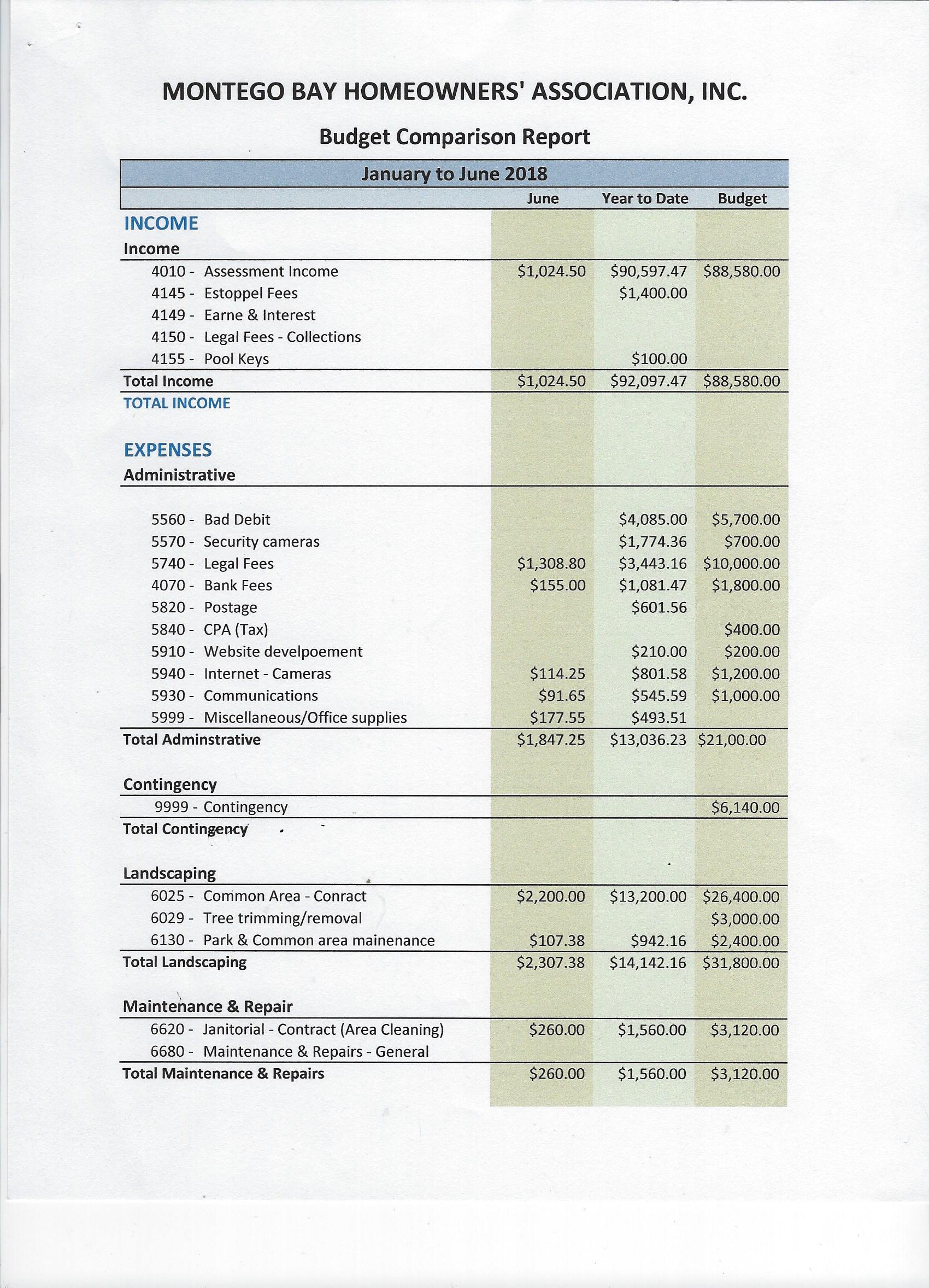 Financial report for January-June 2018